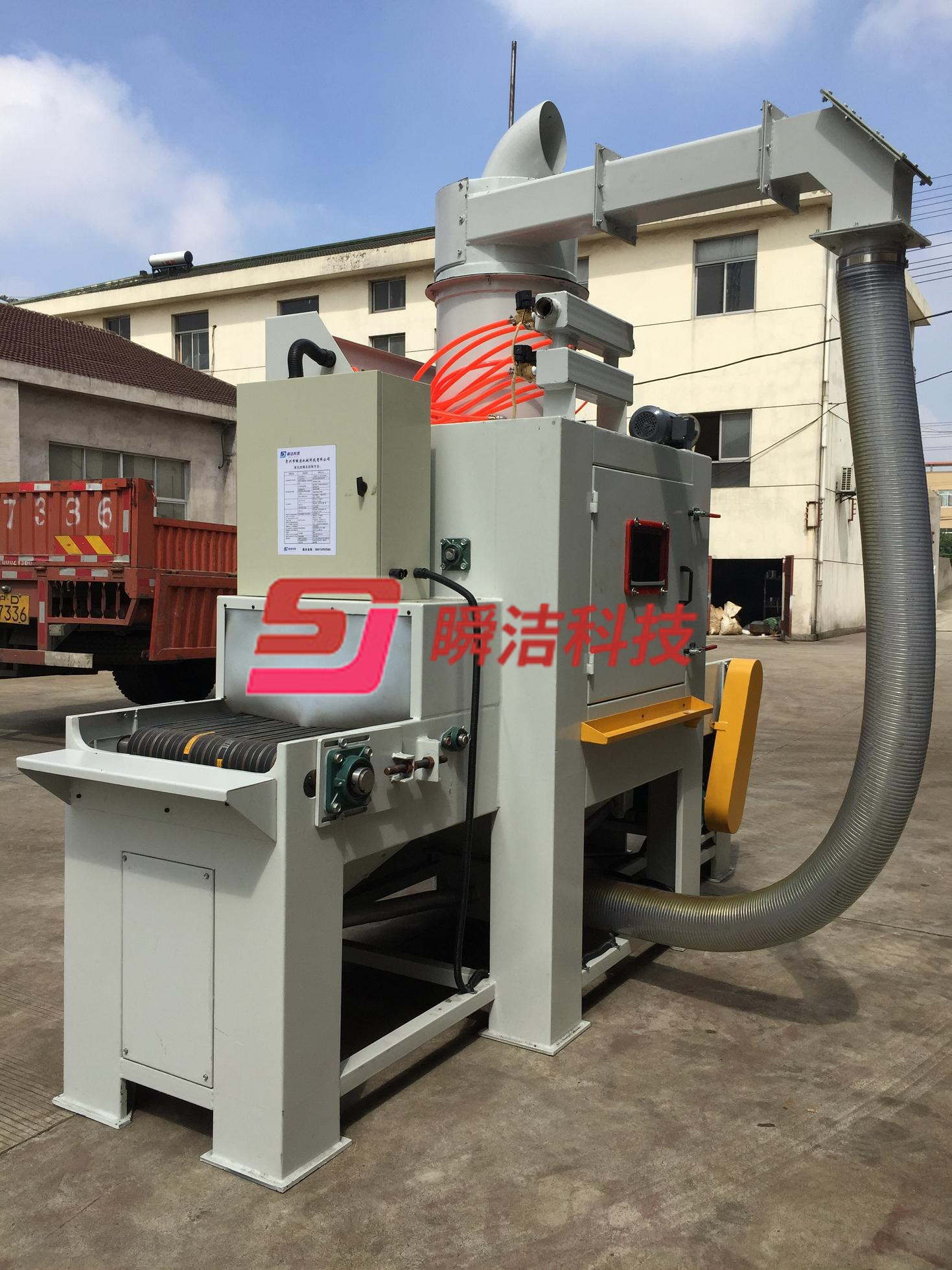 5、配有大型除塵機和特制磨料與粉塵旋風分離器,可分離磨料與粉塵,可減少磨料消耗,環(huán)境污染。磨料可自動循環(huán)使用。
