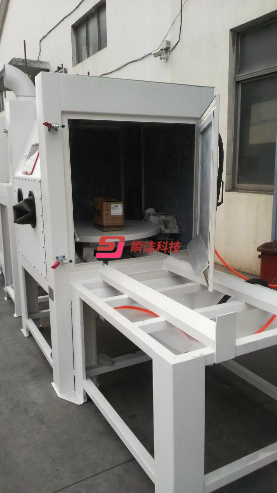 3、配備活動臺車,和轉盤,操作時將工件放在轉盤上,然后推入機內(nèi)即可噴砂作業(yè),操作簡單省力。